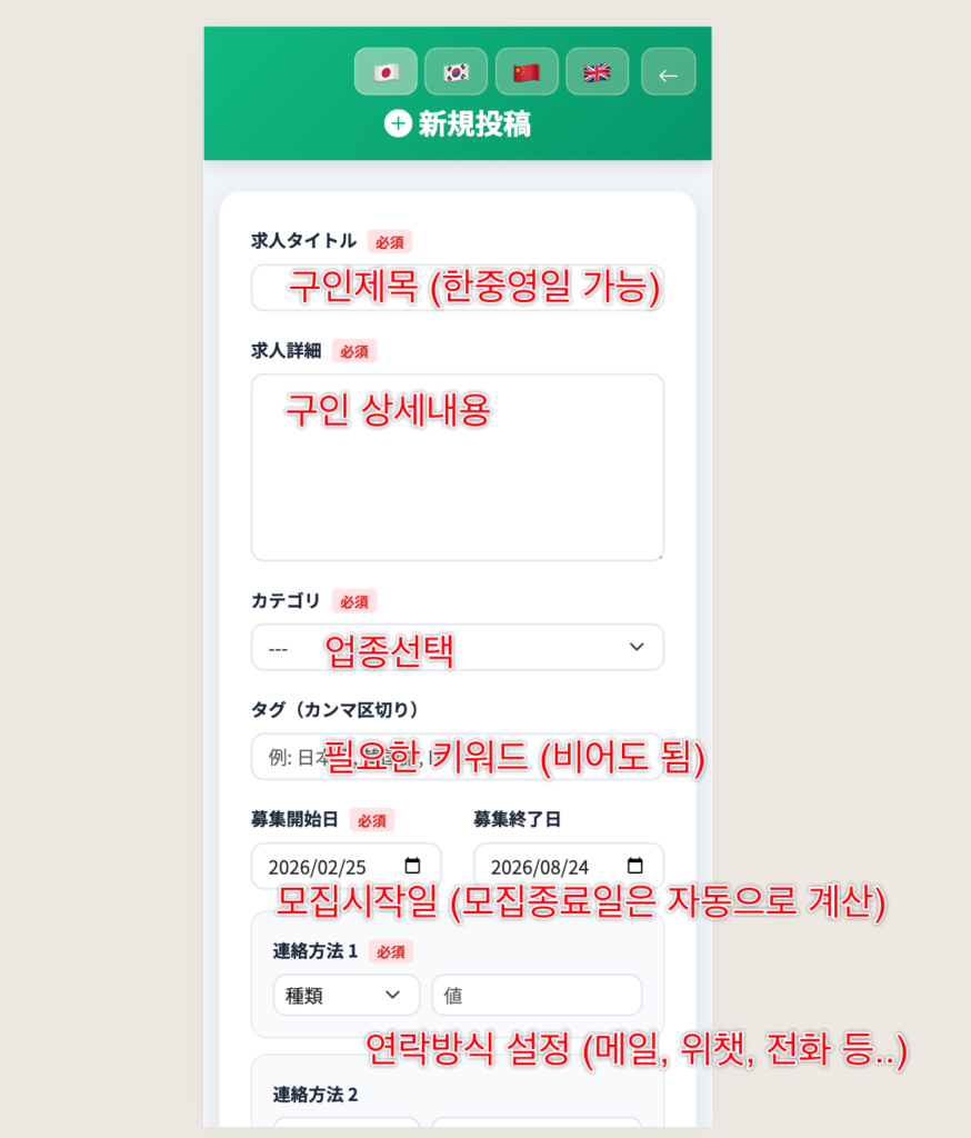 必須言語:韓国語、中国語、日本語