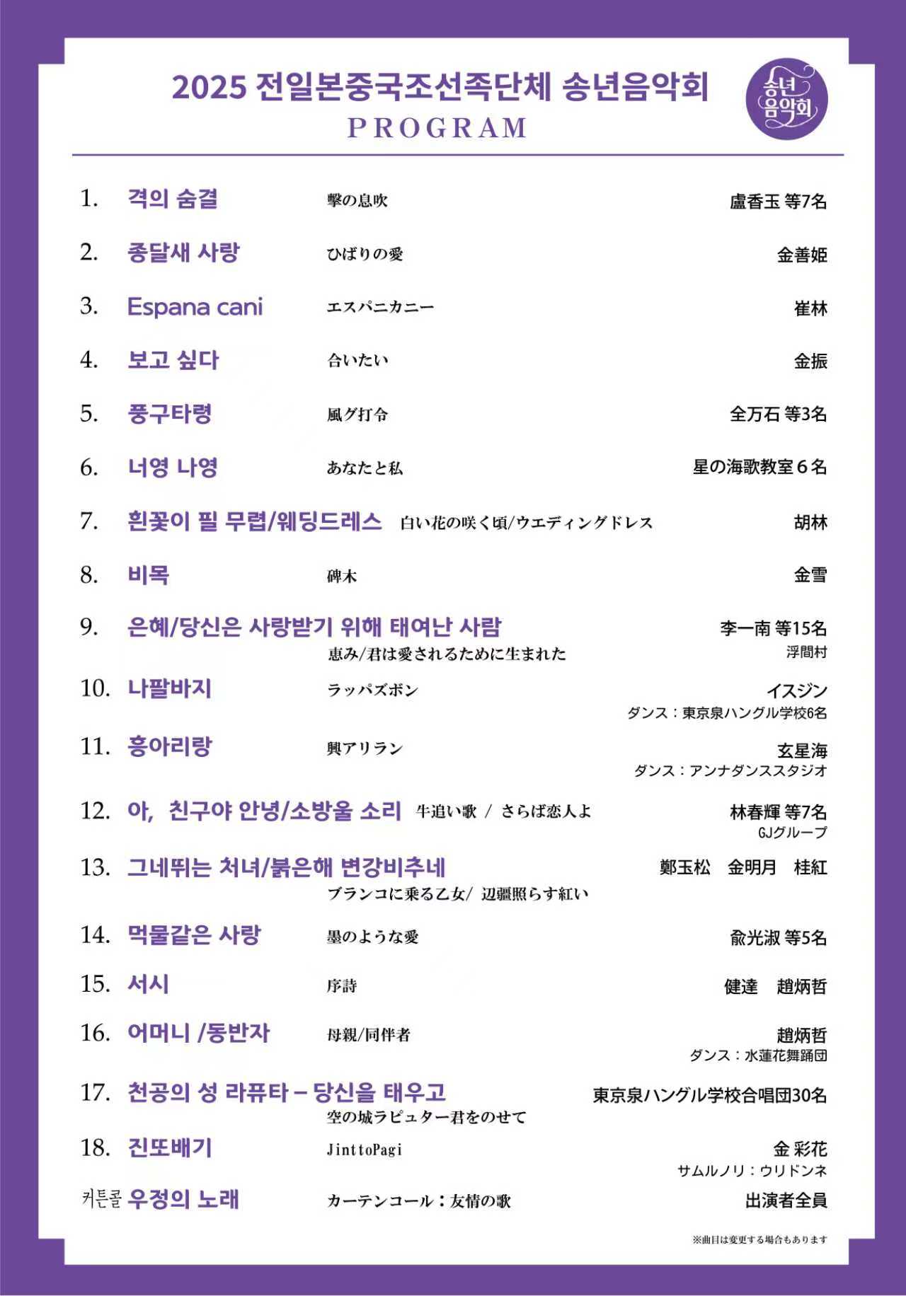 드디어 전일본중국조선족단체 송년음악회가 이번주 금요일인 12월12일 저녁 7시에 여러분들과 대면하게 됩니다.