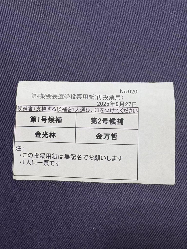 전일본중국조선족연합회 회장의 임기는 2년이며, 이번 제4기 선거는 연합회 사상 첨으로 민주선거 방식을 도입하여, 지난 6월부터 선거관리위원회를 설립하고, 김광림 후보 김만철 후보의 공약 발표, 후보간의 대면 토론 등 절차를 거쳐 연합회 이사들에게 후보들에 대해 충분히 요해하는 과정들을 제공하였으며, 27일날의 투표는 무기명으로 진행하여 이사들의 의사가 솔직하게 반영되도록 하는 방식으로 진행이 되었답니다.