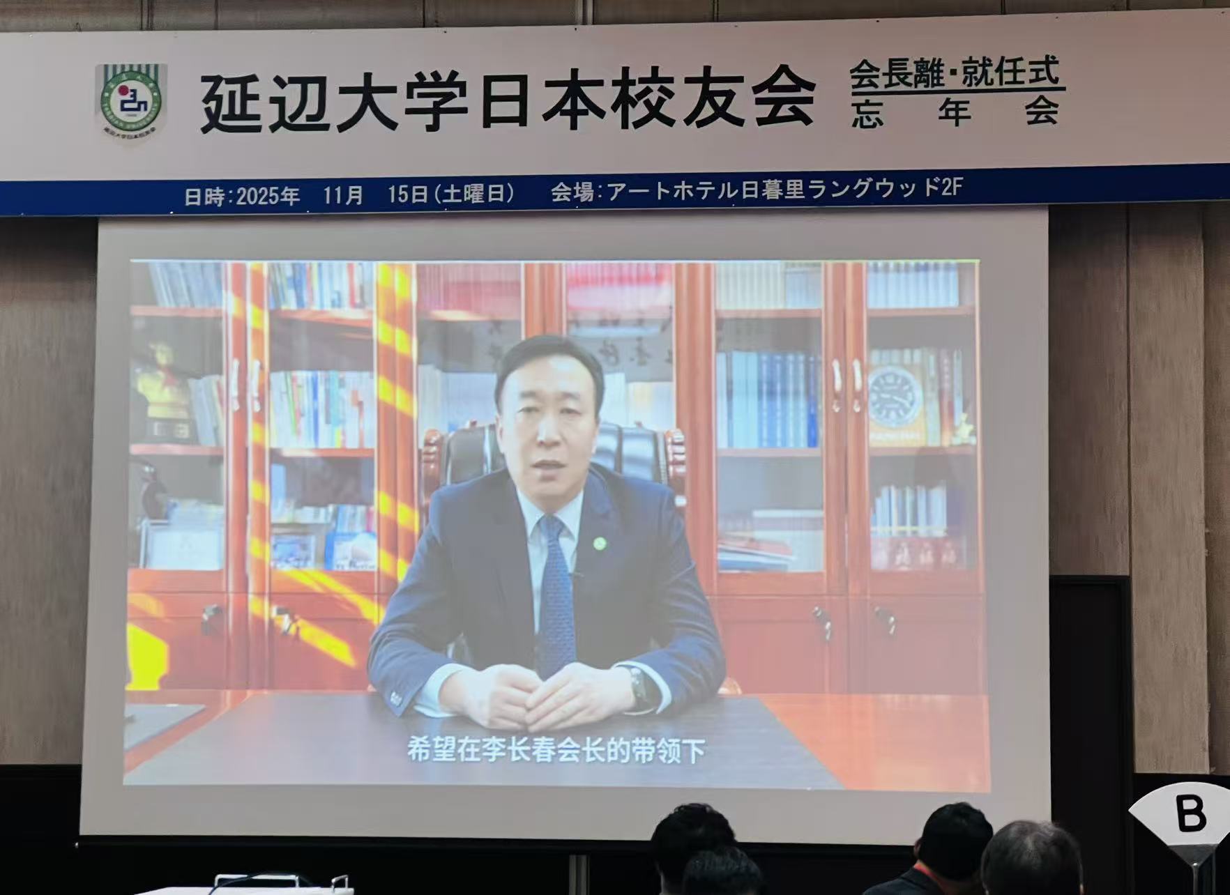두루이(杜锐) 연변대학 당위 서기는 연변대학일본학우회 차기 이사회 출범을 축하하는 영상 메시지를 통해 모교의 변함없는 관심과 지지를 전했다. 그는 류림 이임 회장과 역대 회장들의 공로에 깊은 감사를 표하며, 1992년 설립 이후 이어져 온 학우회의 성장과 모교 발전에 기여한 헌신을 높이 치하했다. 이어 그는 "학우들은 그 어디에 있든 모교가 늘 자랑스러워하는 가장 소중한 자산"이라며, "연변대학은 영원히 학우들의 든든한 버팀목이자 따뜻한 집이 될 것이며, 모교의 문은 항상 학우들을 향해 열려 있을 것"이라고 따뜻한 격려의 말을 건넸다. 마지막으로 학우회의 번영과 모든 학우의 건강과 행복을 진심으로 기원하며 메시지를 마무리했다.