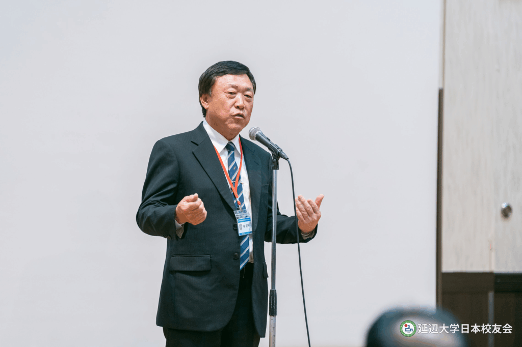 인사말을 올리는 연변대학일본학우회 리장춘 신임 회장