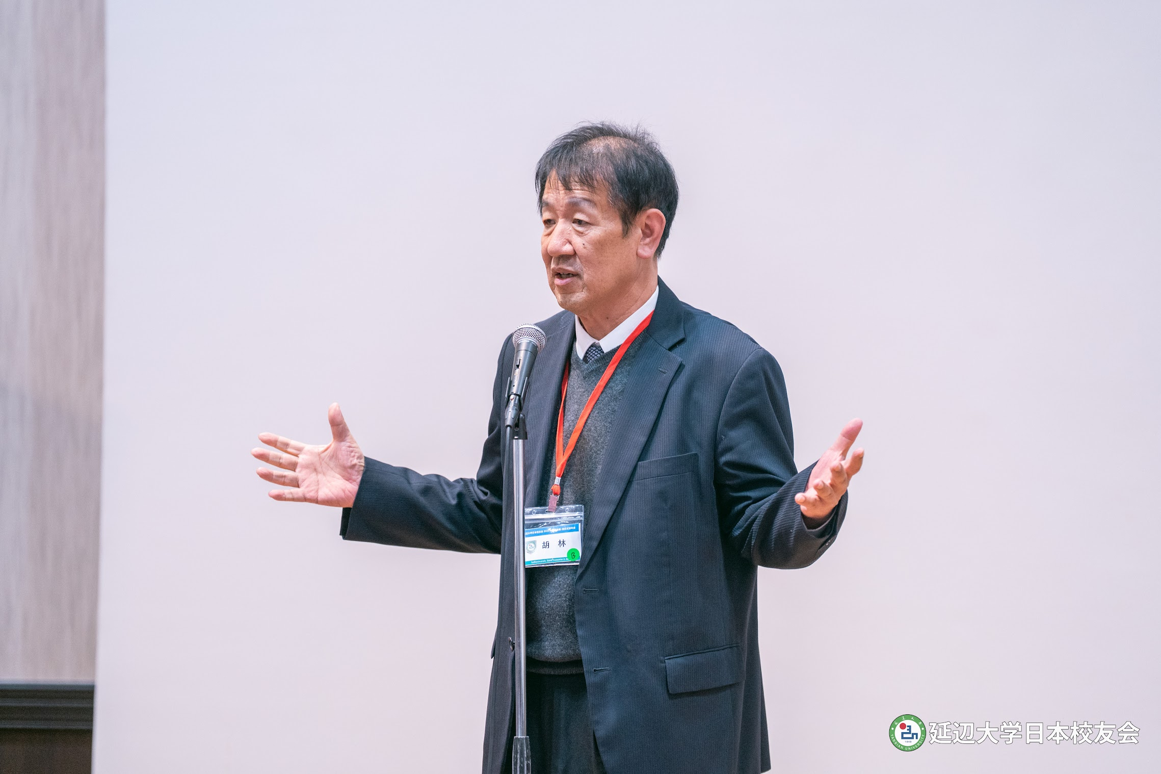 행사 총결을 하는 연변대학일본학우회 호림 명예회장