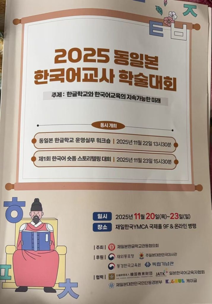 2025년11월23일, 재일본한글학교 관동협의회에서 주최한 "제1회 한국어 스토리텔링 숏폼 대회"가 도쿄 한국문화원에서 성황리에 개최되었습니다.