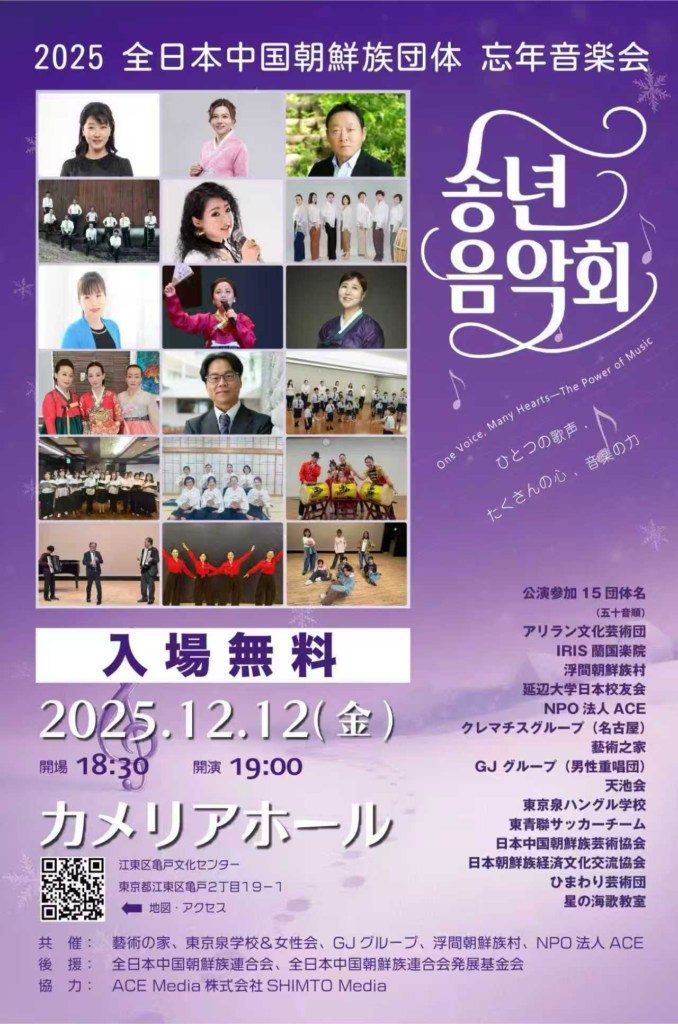 지난 12일 저녁 도쿄 가메이도 문화 홀에서는 ‘2025 전일본중국조선족단체 송년음악회’가 성황리에 열렸다.