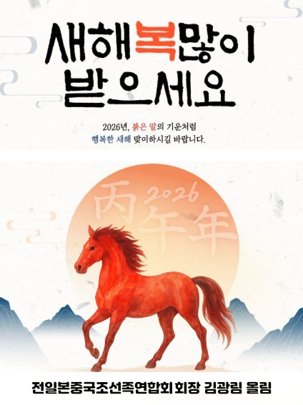 2026년 병오년 (丙午年) 새해가 밝았습니다. 붉은 말의 상서로운 기운을 받아 여러분께서 희망찬 새해를 맞이하시고, 복 많이 받으세요. 여러분께서 계획하시는 모든 일 소원성취하시고, 건강과 행운, 평안이 항상 함께 하시기를 기원드립니다.