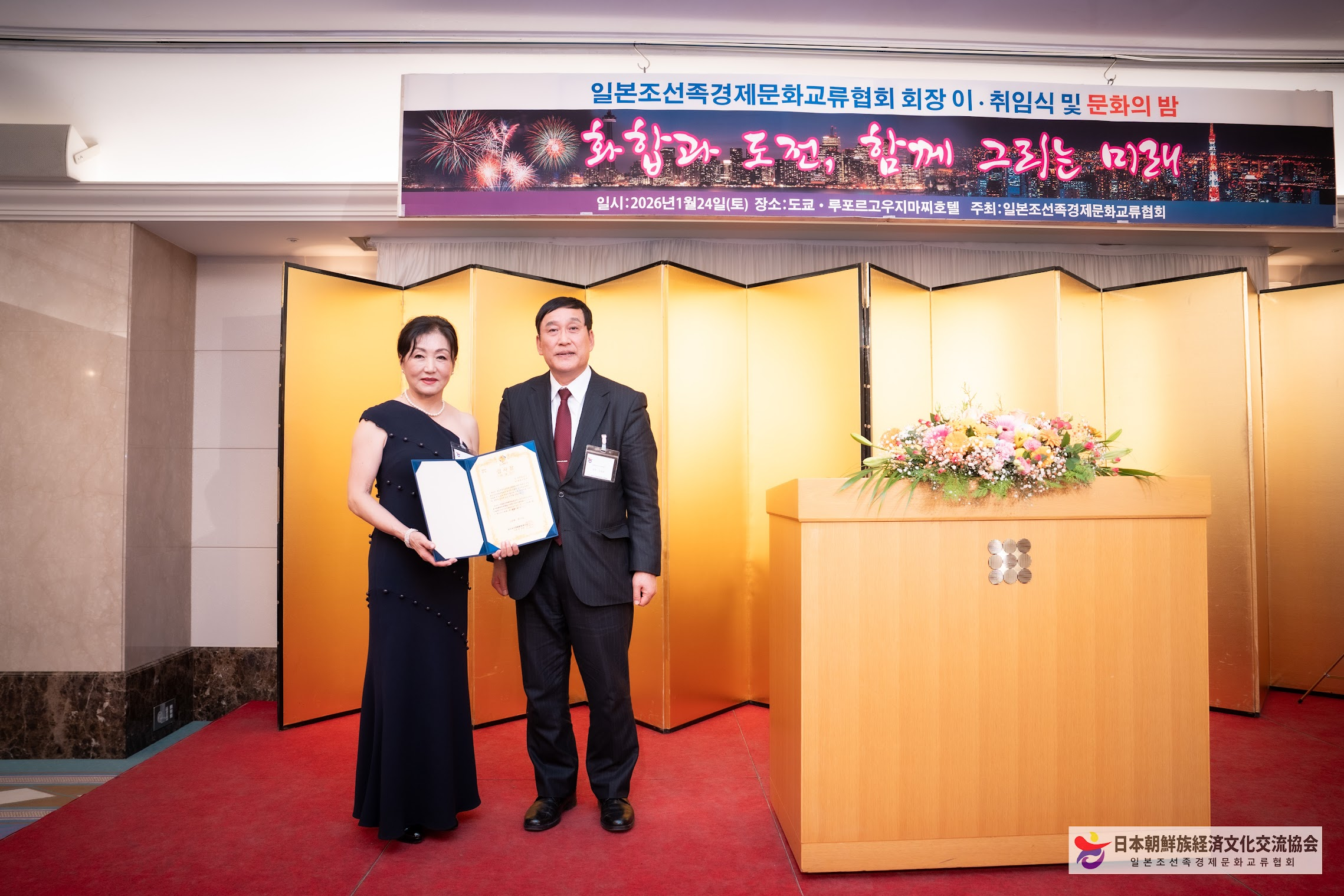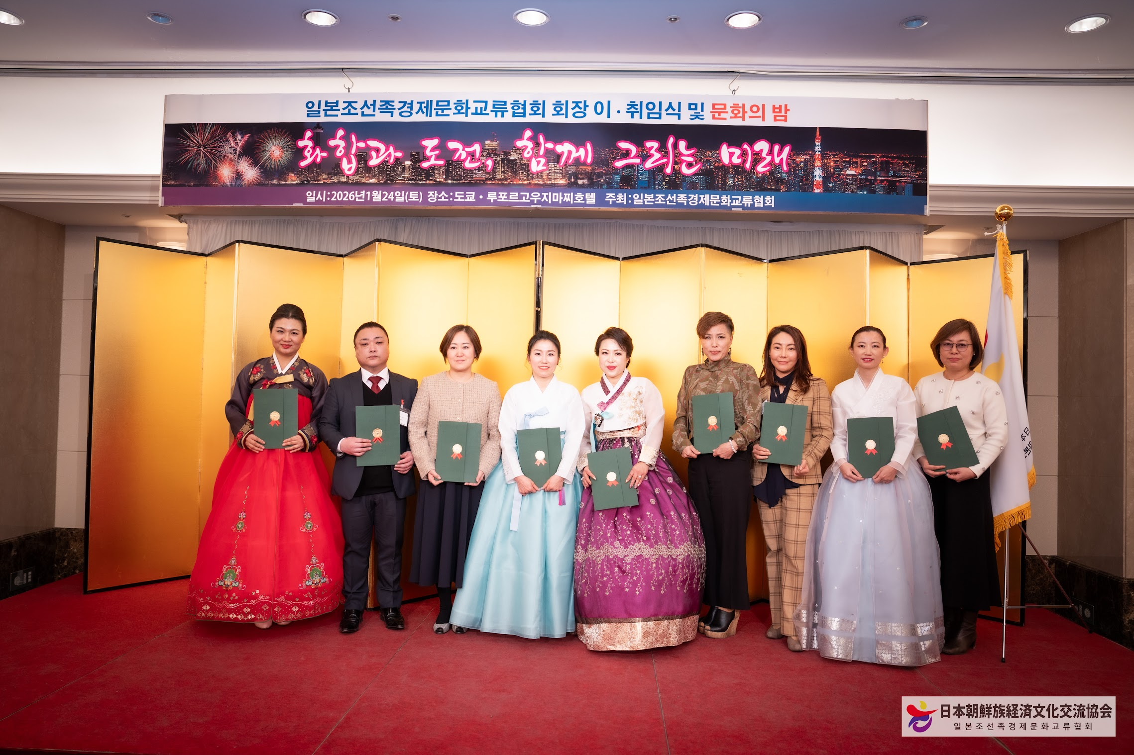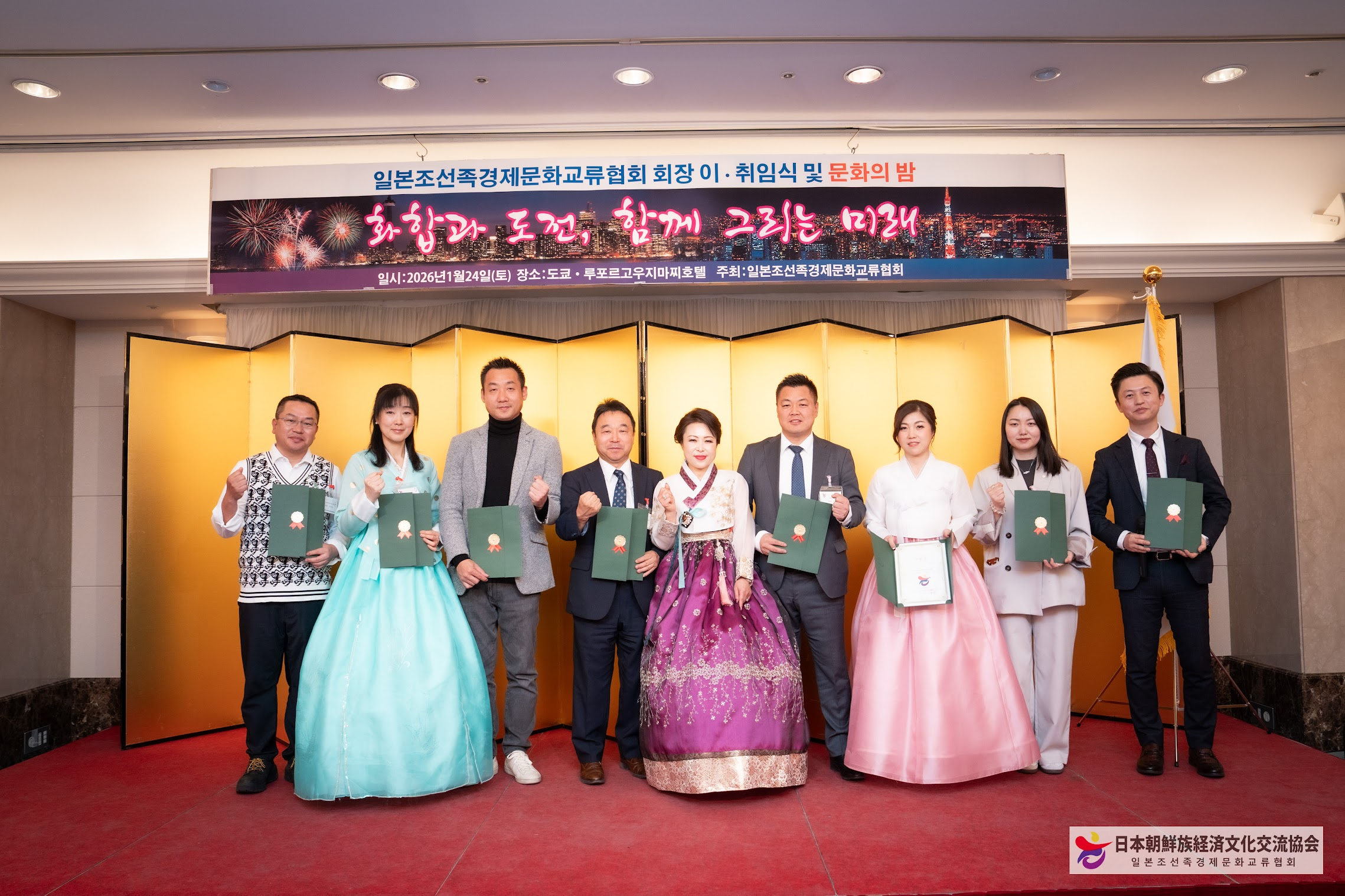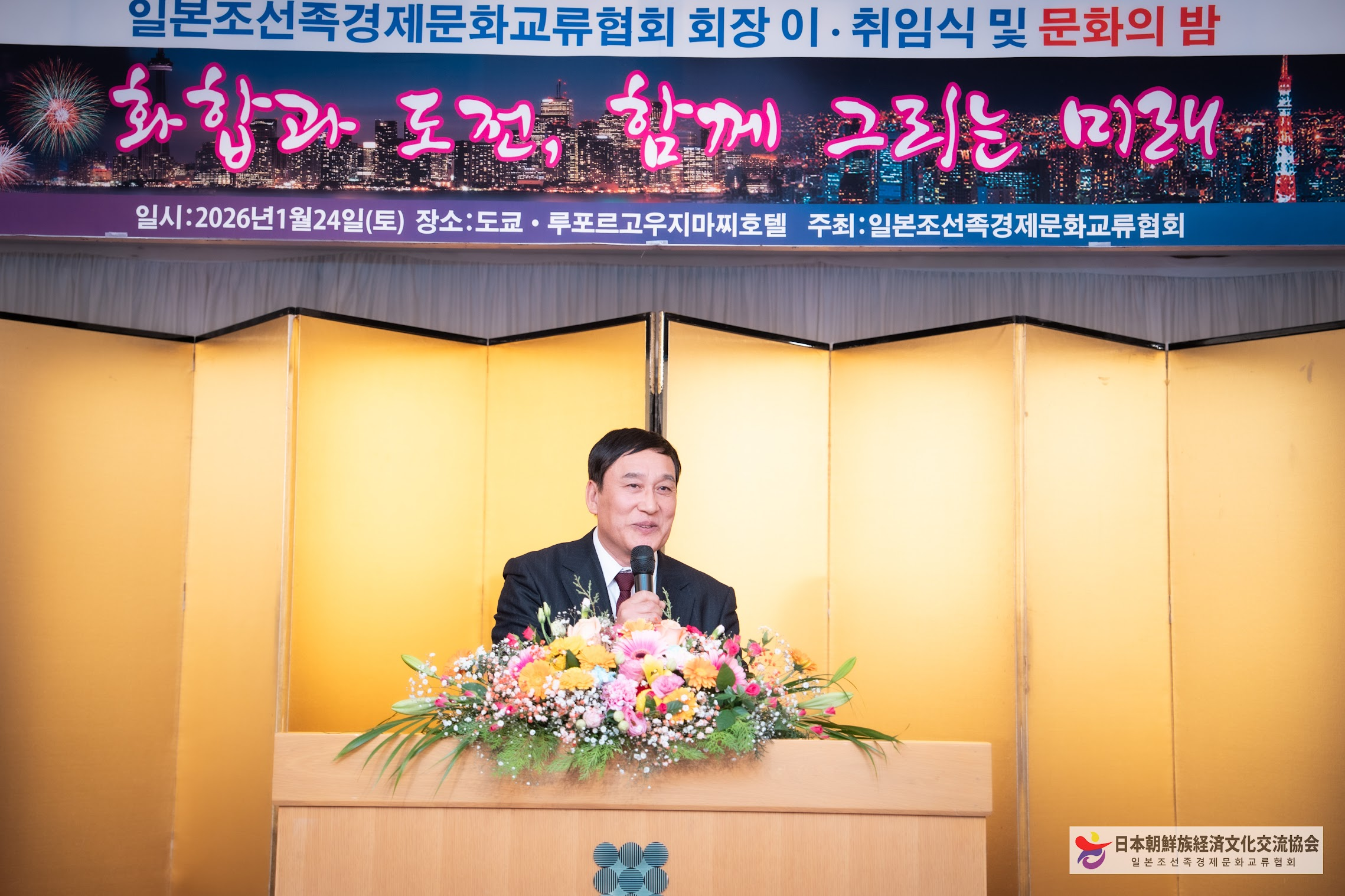 일본조선족경제문화교류협회는 지난 1월24일 저녁, 일본 도쿄 고지마치(麹町)에 위치한 도쿄루포루호텔에서 회장 이·취임식과 함께 ‘문화의 밤’ 행사를 성황리에 개최했다.